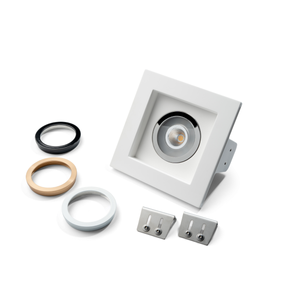 Of u nu led-spots van Loxone in een plafond wilt inbouwen of juist een Loxone-aanwezigheidsmelder: het Square-gipsarmatuur is een goede keuze. U bouwt de Loxone-installatie hiermee namelijk naadloos in. U kiest hierbij een ring in een kleur naar keuze - wit, zwart, chroom of koper.